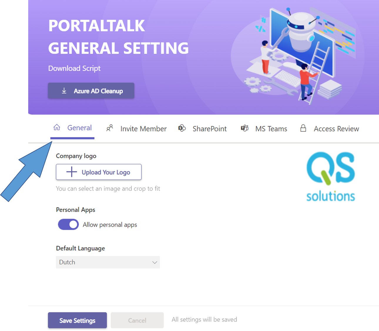 Select the Configuration > General Settings navigation option to open the PortalTalk General Settings page.