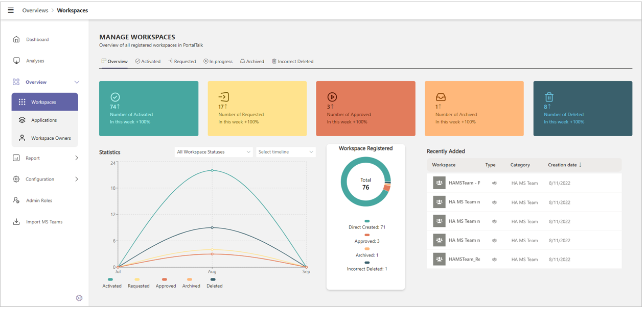 PortalTalk administrators handle the technical management of these workspaces.