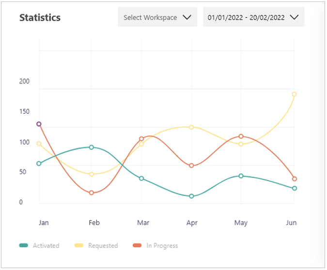 The Statistics graph displays, per workspace status, the volume development of the workspaces registered in PortalTalk, over a specific time interval.